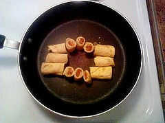 esto es fácil. No estoy seguro si esto un correcto escalfado huevo... pero comen estos pizza tiempo pero sobre todo, taquitos... NADA (ver publicado mi anterior) necesita relleno, huevos, una rebanada generosa de mantequilla, y recomiendo una sartén