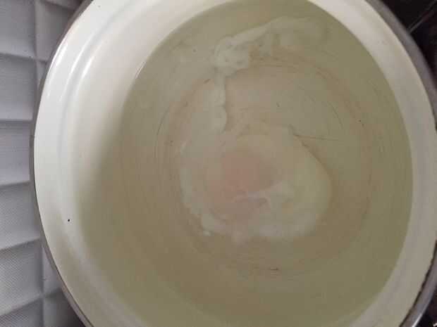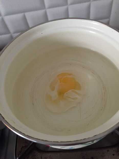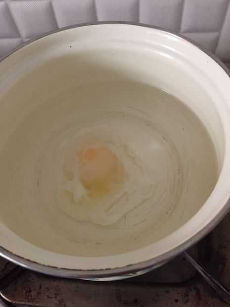 Mientras viertes el huevo, asegúrese de que la superficie del recipiente toque el agua