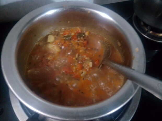 Escalfado huevo con puré de tomate picante India (3 / 5 paso)