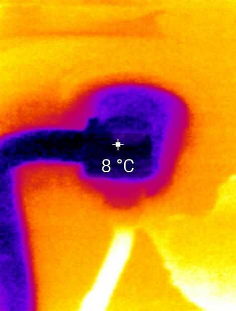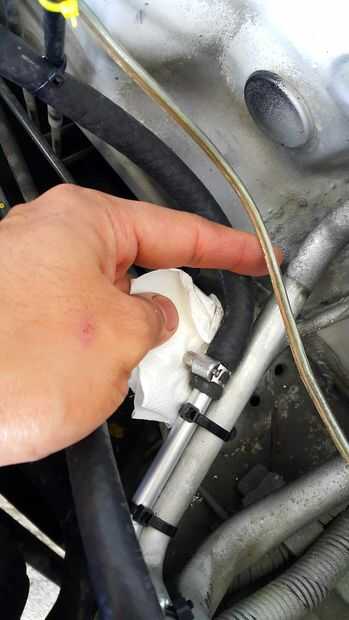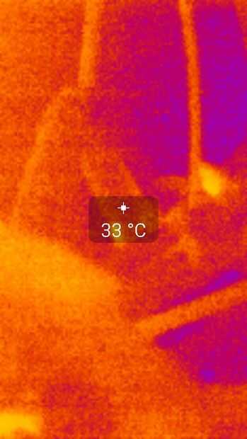 Usando mi buscar la cámara térmica de infrarrojos, comencé el motor y mide la temperatura de la línea de retorno después de 10 minutos. Leer aproximadamente 33 grados Celsius.