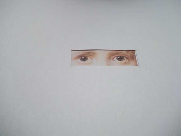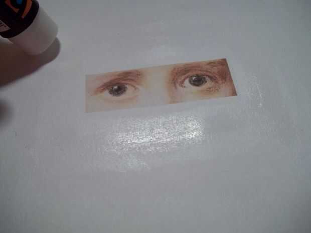 Aplique pegamento en la parte superior de la página de ojos por todas partes pero los ojos. Línea de la página en blanco (s) para que la caja de corte es sobre los ojos y presionar. Una vez más, puedes colocar unos libros pesados en la parte superior para mantener las páginas planas mientras el pegamento seca.