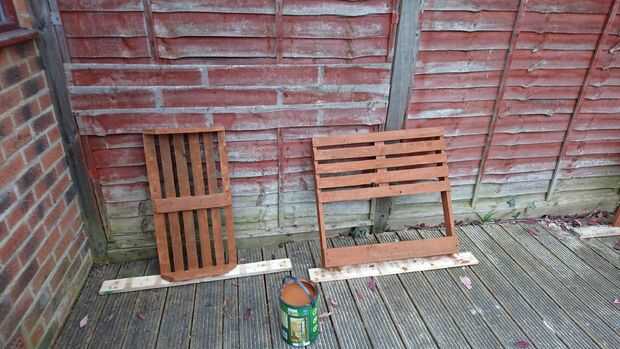 Me las arreglé para recoger una lata de cinco litros de esgrima mancha de un supermercado para £5 (USD$ 7), que era perfecto para la madera aserrada palets!