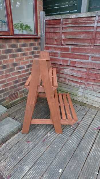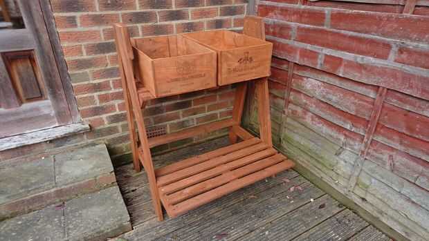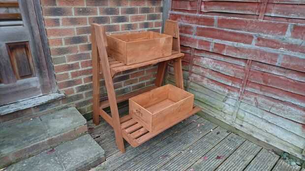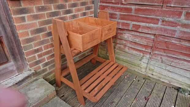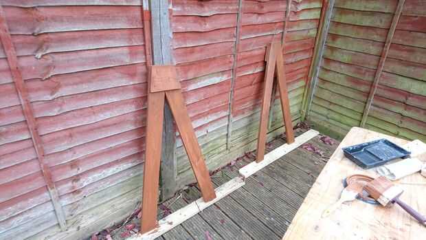 Para pintar el estante del plantador, rompió en cuatro partes y pintar cada uno por separado. En el futuro, voy a pintar como una unidad completa, pero para darle cierta protección contra el clima británico, pensé que sería mejor pintar cada pulgada! Antes de pintar, tomé un filo de la navaja a los frente a bordes de los estantes y los marcos de V. Esto fue sólo quitar cualquier astillas sobre bordes afilados. Se aplicó dos capas de la mancha de cerca, con un ligero lijado entre capas.