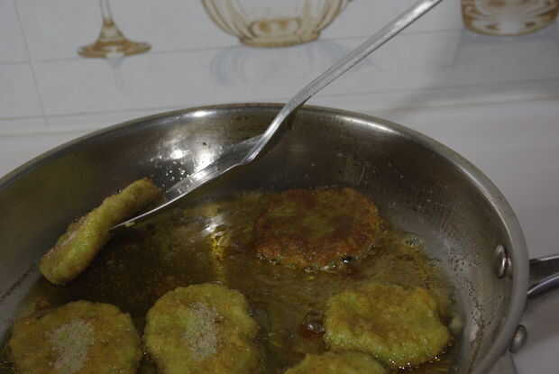 Luego poner las empanadas en el aceite (deben chisporroteo de las empanadas inmediatamente al entrar en la bandeja, si no aceite no está suficientemente caliente y tiene que esperar un poco más).