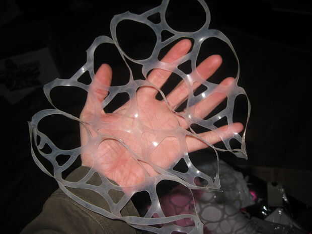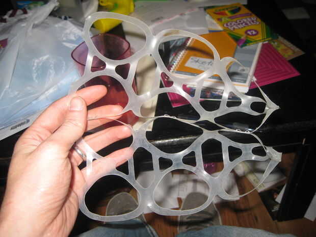 Cada anillo es doblado por la mitad y engrapada en el final. Luego de la grapa lo 2 veces para unir otro segmento. Vez en el centro y una vez en el final.