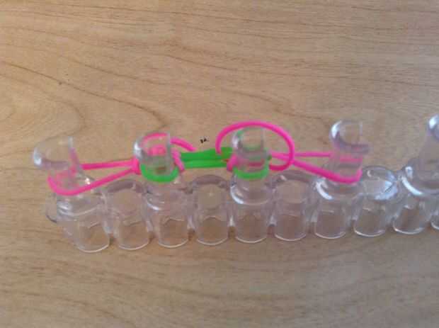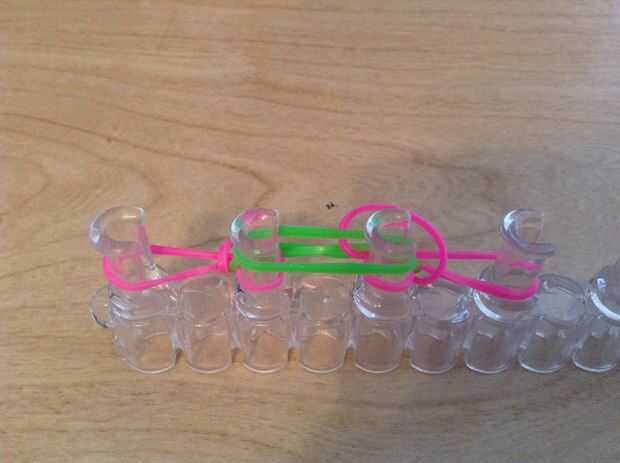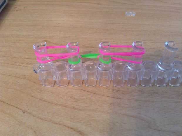 yaaPaso 1: Vas a necesitar:telar del arco irisGanchoBandasClip CPaso 2: Agarrar una banda y empieza de la clavija central en la clavija correcta, luego volver a la clavija media. Repita el proceso hasta que usted alcanza la parte superior.Paso 3:Dale