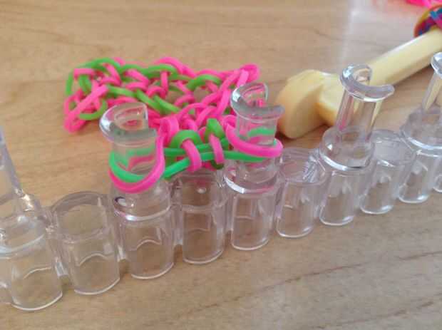 Paso 1: fuentes de Necesita un kit de inicio para el telar del arco iris y algunas elásticas.Paso 2: Colocar las bandas Iniciar colocando un color de borde y no empezar a poner encima de todo lo que tienes que hacer en los patrones.Paso 3: Colocar la