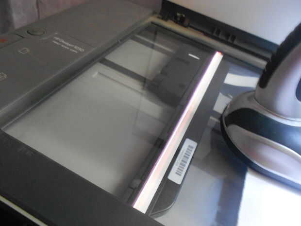 Coloque una lámpara de escritorio u otra pequeña luz para que la bombilla se encuentra cerca de cuatro a seis pulgadas por encima de la parte superior de la cama del escáner y el pedazo blanco de papel. Encender la lámpara.