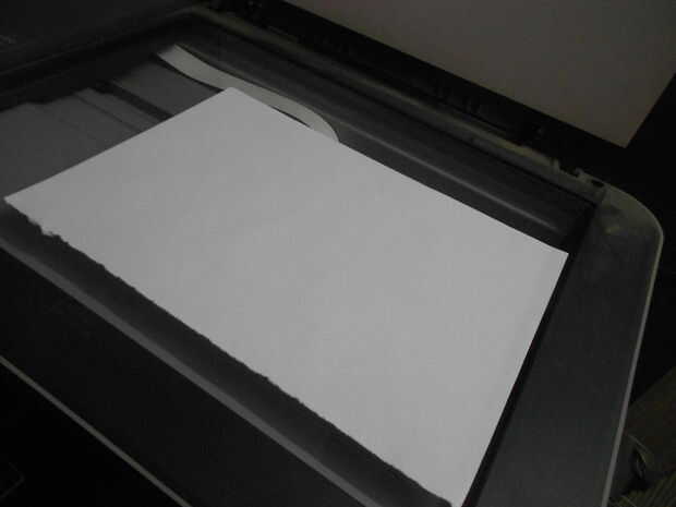 Coloque uno de los cuadros negativos en el centro del cristal del escáner, para que se alinee con el borde del cristal del escáner y es tan recto como sea posible. Coloque un pedazo de papel blanco normal de tamaño carta sobre la negativa mientras que teniendo cuidado de no mover o empujar la pieza de marco. Deje la tapa abierta, o eliminar completamente si fácilmente puede extraer desde el cristal del escáner.