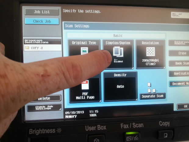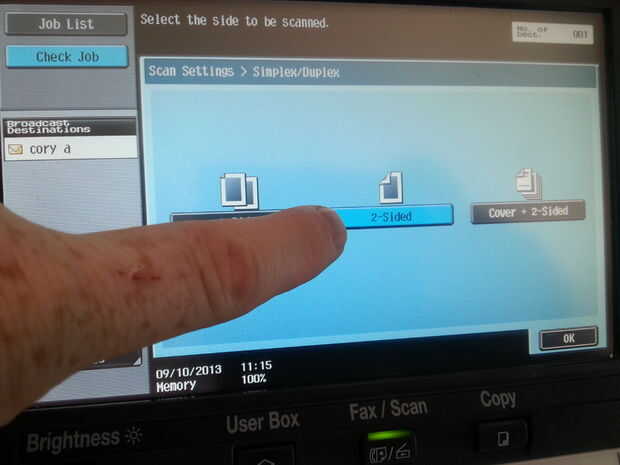 Hacer los pasos anteriores, pero antes de presionar el botón Inicio, seleccione Configuración de exploración, seleccionar 2 dúplex, seleccione a un lado y luego en aceptar dos veces.
