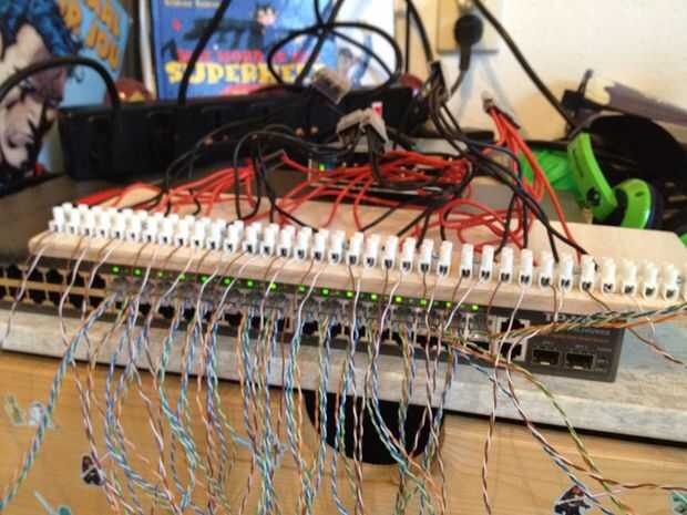 En el otro lado, construir un "tablero de distribución de energía" de mi fuente de alimentación de 5v solo 60A a donde pude conectar fácilmente todos los 5v y tierra los cables procedentes de cada cable de ethernet.