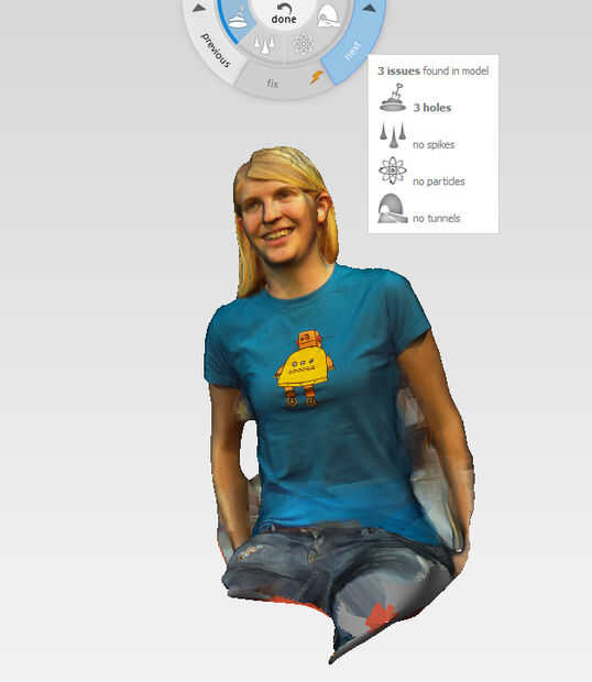 Algo se hacen ahora. Tienes un modelo en 3d para imprimir. Si desea limpiar el modelo más arriba hay algunos programas que le pueden ayudar con eso.