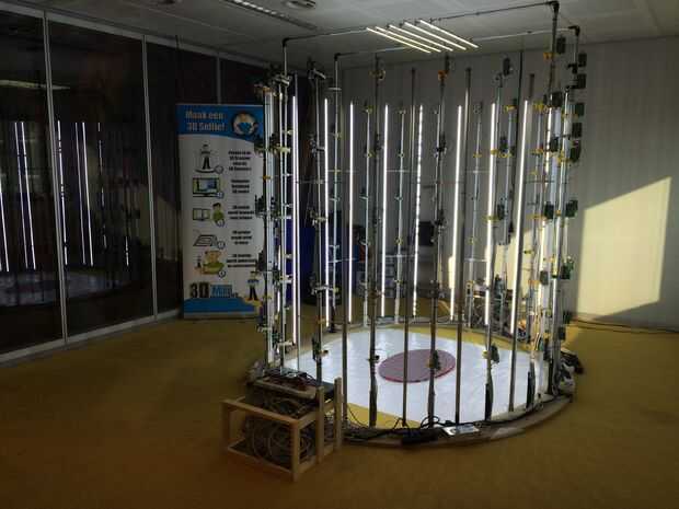 Entre cada poste es una tira de LED de 2 metros de alto poder blanco (19.2watts metro). En la parte superior se llevó algunos extra (10 vatios por el metro) se enciende para iluminar algunos extra encima del cabeza/cabello