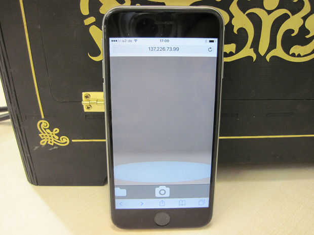 El FabScan Pi se conecta con un cable de ethernet con la red. Escribiendo su IP dirección en el navegador le permiten controlar la FabScan. En la ventana de la base puede buscar exploraciones viejo en la carpeta de la izquierda o hacer un nuevo escaneo con el botón en el centro (a la izquierda es un botón de compartir para la descarga de una exploración de si uno está cargado).
