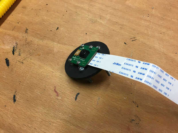 El anillo es lo suficientemente grande como para agregar más adelante un pequeño anillo de neopixel WS2812b. La cámara se monta con tornillos de 2mm en la placa, tornillos de 3mm con resortes se usan como conexión entre el Monte y la vivienda.