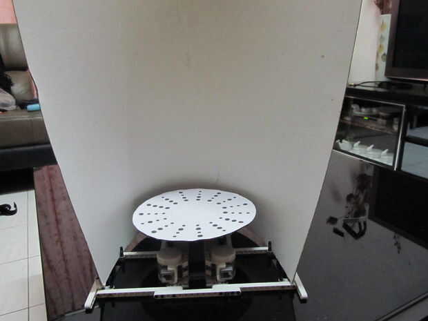 A continuación puse los motores y la plataforma en una base estable que también tiene un tablero de montaje para ser utilizado como fondo.