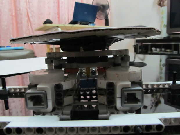de todos modos, me potencia plato giratorio con 2 motores NXT y orientado hacia abajo un poco para que añade precisión y ralentizarlo un poco y para asegurarse de que no soy carece de poder para cualquier modelo pesado.