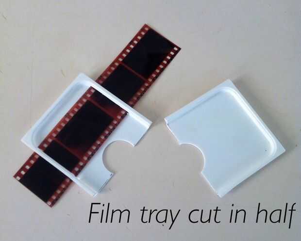 6 Coloque la bandeja de negativos de película sobre arreglo de la luz LED que se pega ya en su caja o carcasa. Hice mis luces LED extraíble para su fácil reparación.