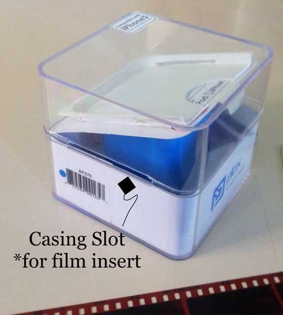 5 cortar una ranura dos en tanto opuesta al lado de la bandeja del iPhone para insertar película negativa. (Como se ve en las imágenes). Y también corte una ranura en su caso alligning su bandeja de la película para la fácil introducción de la película