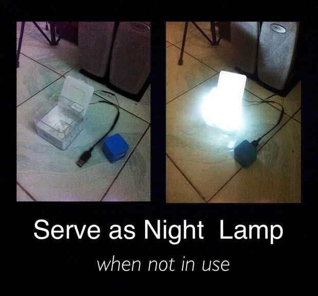 Este proyecto dio lugar a dos usos., como veis en la imagen, que pueda también utilizar como una lámpara cuando es necesario.