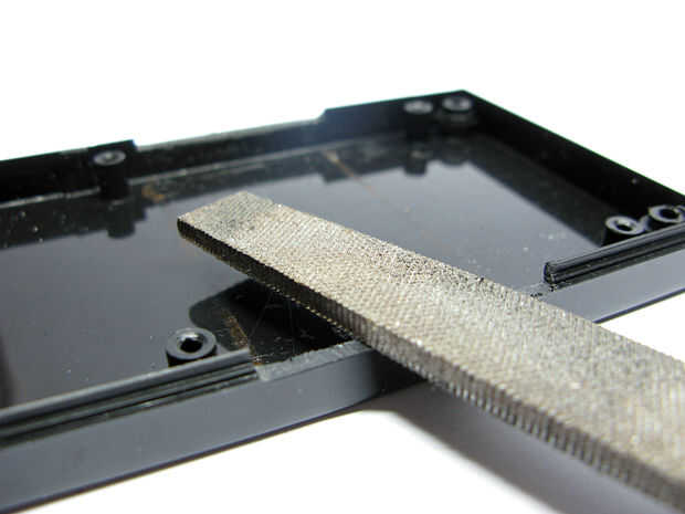 Utilice una lima de metal para dar forma de la ranura de la película. Asegúrese de dar permiso para la película de 35mm, mi ranura tiene un ancho de 40mm.