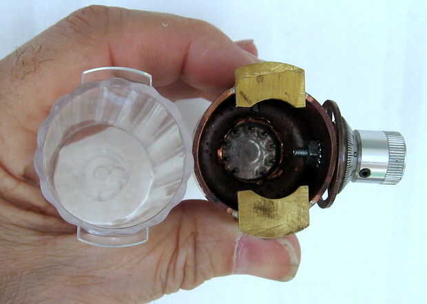 Encontré en una tienda de artesanía (Michaels) un surtido de "engranajes" para actuar como una junta para el tubo y el dial. Estos ayudan a añadir a la Steampunk ven del explorador.