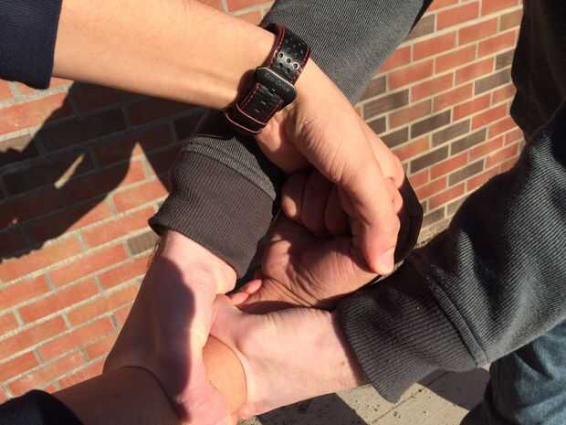 El siguiente paso es inclinar el puño para que la palma quede hacia arriba. Esto es para que cuando se realiza el escape, será más fácil sacar el puño. Agarrar el puño te prepara para tirar el brazo hacia usted, escapar de la bodega.