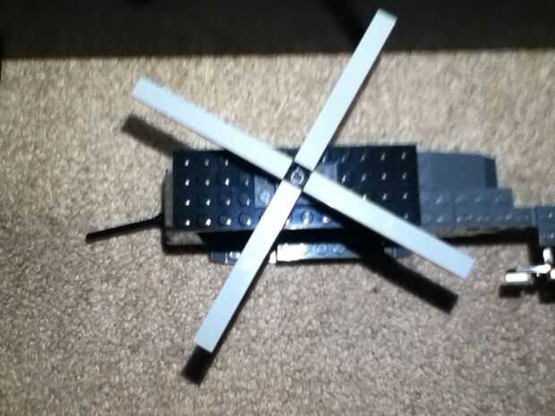 un helicóptero simple para aquellos que no tienen el pequeño lego.Paso 1: Las fotos The gray piece is a swivel to allow the rotars to spin freely