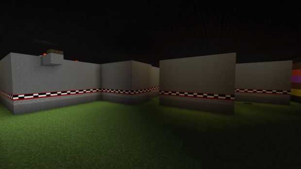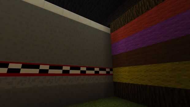 Para las paredes "concha" exterior, hice franjas con todos los colores de animatronic. Incluye rojo para Foxy aunque él fue continuado. He añadido porque estoy asumiendo que este lugar fue abierto antes de que se suspendió.