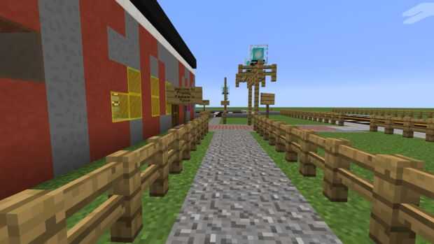 También hay 2 caminos de grava y 1 sendero de ladrillo que te llevan el la puerta. El camino principal, en el centro, tiene una gran proyección que tiene signos darte la bienvenida y diciendo adiós. Los otros 2 caminos se encuentran de las porciones del estacionamiento. Tienen los mismos signos, pero no parte de la proyección