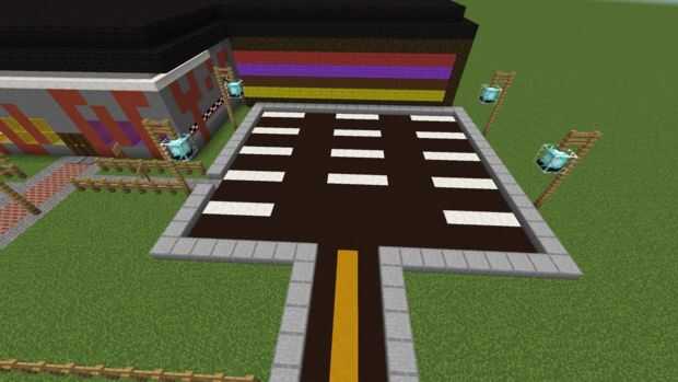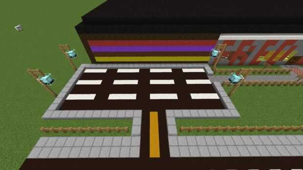 Decidí construir un camino que trata de la misma longitud del edificio. Conectado a la carretera son 2 independientes estacionamiento. También hay banquetas principales de la carretera a la entrada.