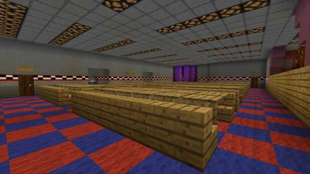 Después de terminar las paredes y el diseño, he construido el comedor, escenario y la ensenada del pirata, todos los cuales están en el punto abierto grande en el mapa.