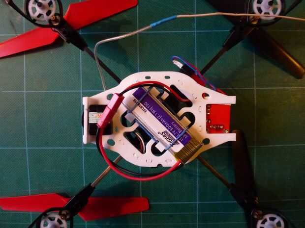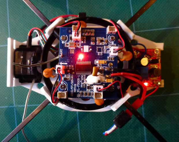 3. paso convertidor de 3.7V a 9 o 12V dependiendo del tipo de cámara. Usar la misma batería para el quad y el enlace de la cámara.