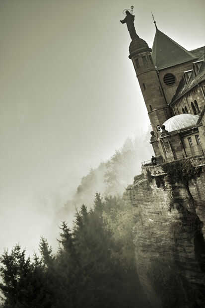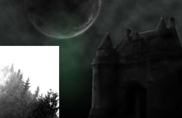 Abra la Foto stock conmigo en el abismo... , desaturarlo (Ctrl + U) y, con la herramienta marco Rectangular, crear una selección alrededor de los árboles.