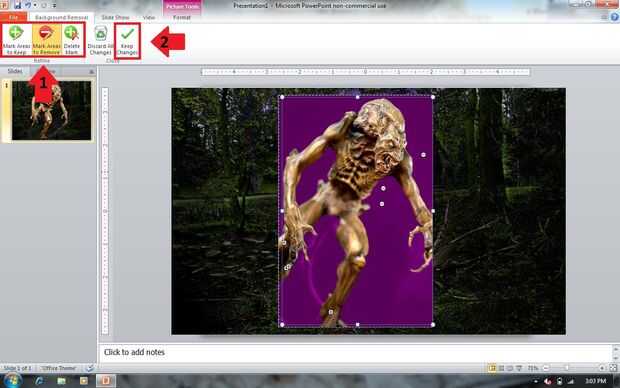 Utilice las herramientas en la parte superior para seleccionar que partes de la imagen que desea eliminar y qué partes desea mantener. Cuando esté satisfecho con los resultados, haga clic en "Guardar cambios".