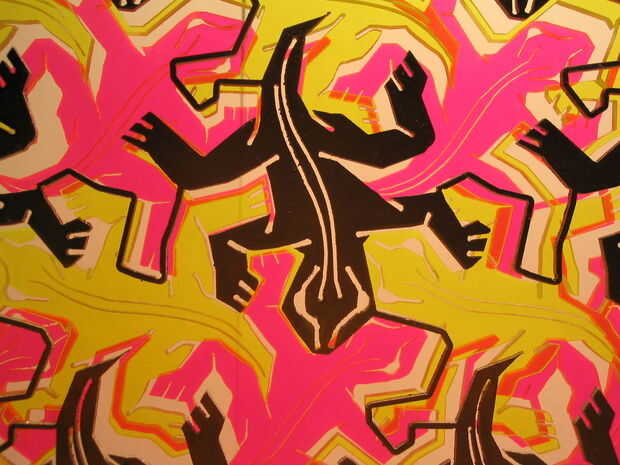M.C Escher fue un artista holandés que especializado en la producción de matemáticamente inspirado cortes de madera. Muchos de sus cuadros presenta intrincadas teselaciones de criaturas perfectamente encerradas juntos. Los reptiles en este post, (Rep