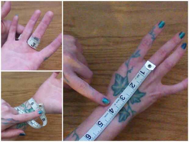 - Anillo de la longitud de pulsera: Mida desde justo por encima de sus nudillos hasta donde se encuentra una pulsera en su muñeca.