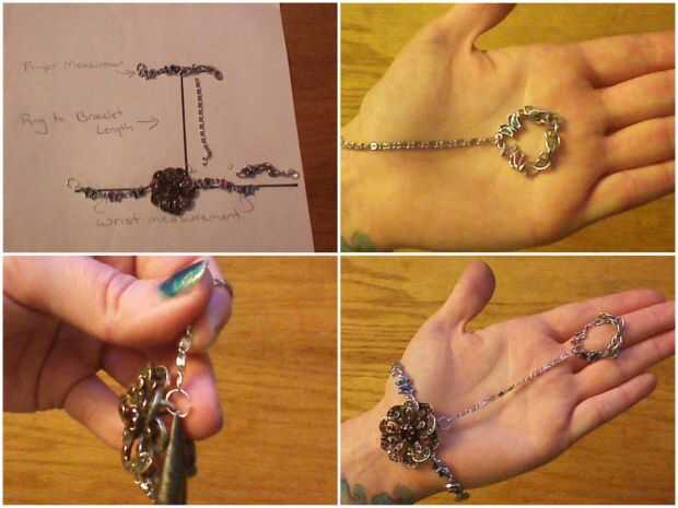 * Empecé a mina, poniendo una pequeña cadena con unos encantos de mariposa para hacer mi anillo. Entonces solía dividir anillos conectarse mi anillo de la larga cadena que va a conectar a mi pulsera. A continuación adjunto esa cadena larga a un encanto, el encanto de mi pulsera y por último ha añadido algunos enlaces y un broche a la pulsera.