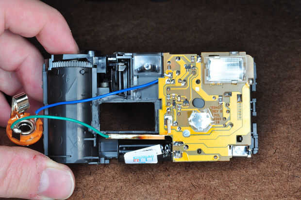 Colocar la tapa frontal mientras que el conector de alimentación a través del orificio. Poner la arandela y la tuerca en el conector. Usted será capaz de mantener la toma alineada a través de la cavidad de la exposición en la parte posterior. Por último encaje la tapa en su lugar.