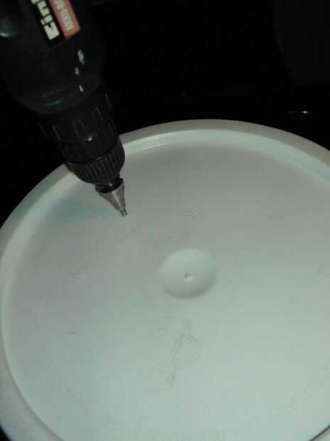 Utilice el taladro de paso o el golpe de nocaut para hacer un agujero en la tapa de su contenedor.