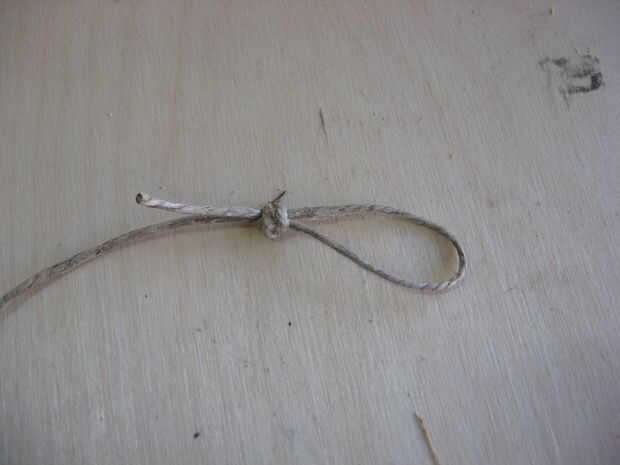 Saque alrededor de 12 pies o menos de guita y ate un lazo en un extremo. Dejar la parte trasera del lazo cerca de 3 pulgadas o así, que ayudará a atar de la cuerda más tarde. (Dejé mi demasiado corto, pero todavía logró hacer que funcione.)