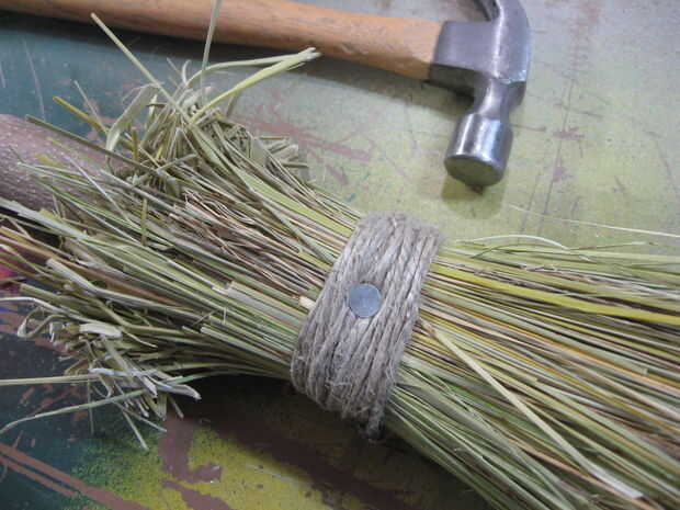 El manojo de cerdas aún se deslizará hacia arriba y abajo el palo de escoba, a menos que fijarlas de alguna manera.