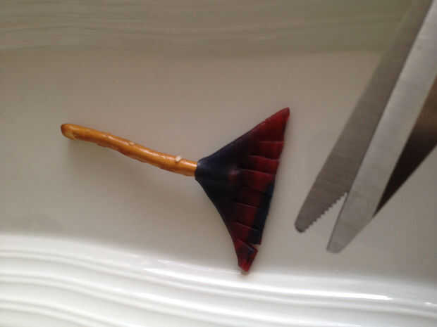 Con una tijera hacer cortes transformando el triángulo en una escoba