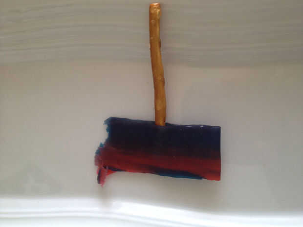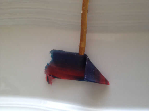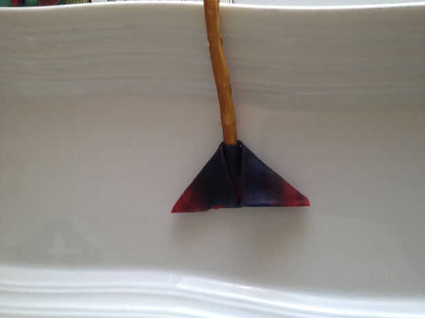 De cada extremo, doblar más cerca al palo, formando un triángulo, prensa para pegar.