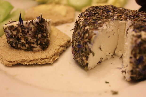 Aunque un desayuno escoc tradicional galleta, el oatcake fue/es también comer con miel, juego, salmón ahumado, sopa y queso. Arriba, es uno de nuestros favoritos, crudo local orgánica fresca de queso de cabra envuelto en pétalos de herbes de Provence y aciano - delicioso!