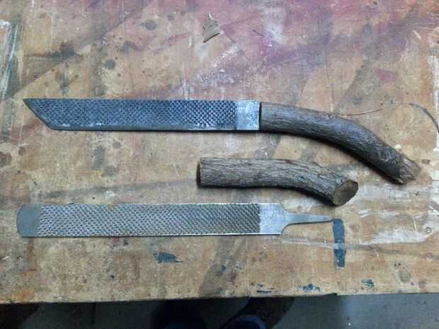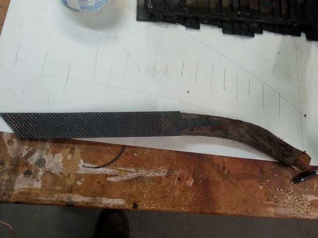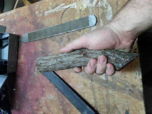 Todo lo que necesitas para este proyecto es una escofina grande y una rama de árbol. Idealmente, usted quiere encontrar una rama que está sobre el mismo diámetro que la escofina que está utilizando para que quede el borde de la hoja con el mango. Afortunadamente, este es el tamaño perfecto para un agradable, manija cómoda.