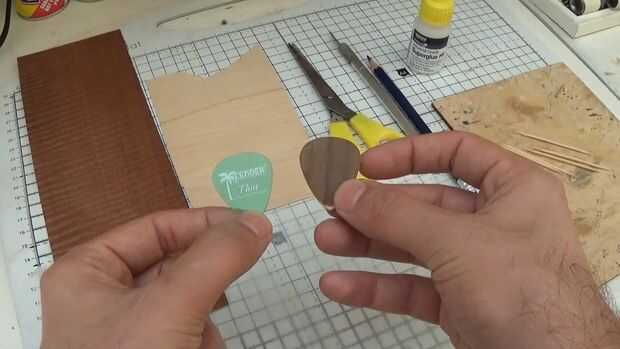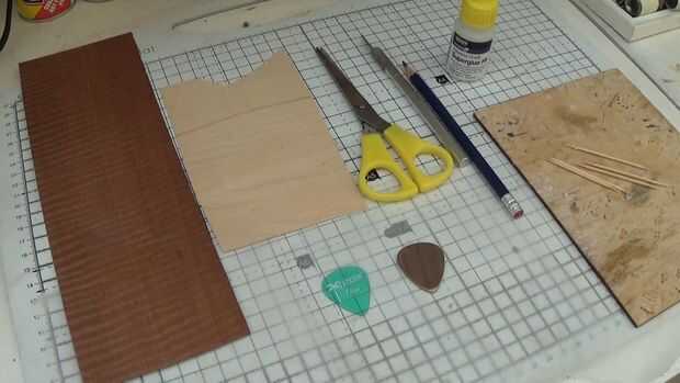 Para hacer la selección va a utilizar un par de hojas de 0,6 mm espesor de chapa de madera – aquí tengo maple y caoba adornada.