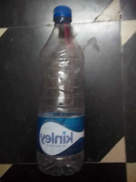 Ahora tomar una tapa de plástico que está abierta de la botella de agua y pegar a la botella de agua que se ha seleccionado como se muestra en la figura anterior utilizando adhesivo Quick Fix.