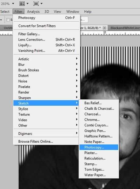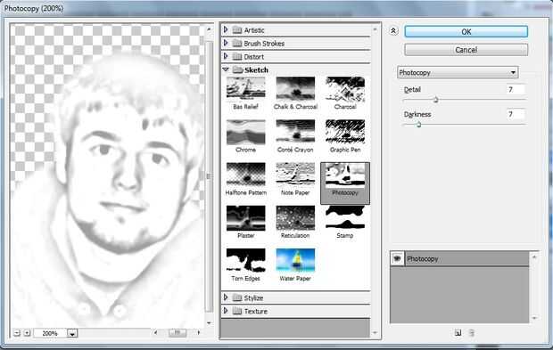 Ir a filtro / bosquejar / fotocopia (imagen 7).