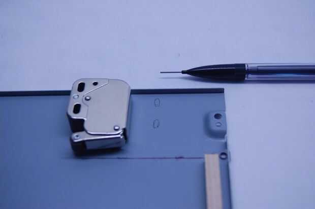 Instale el pestillo en su lugar marcar los agujeros del pestillo, perforación y apretando tornillos pequeños. Corte hilos de exceso.